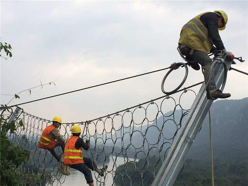 施工隊伍正在進行邊坡防護網的安裝